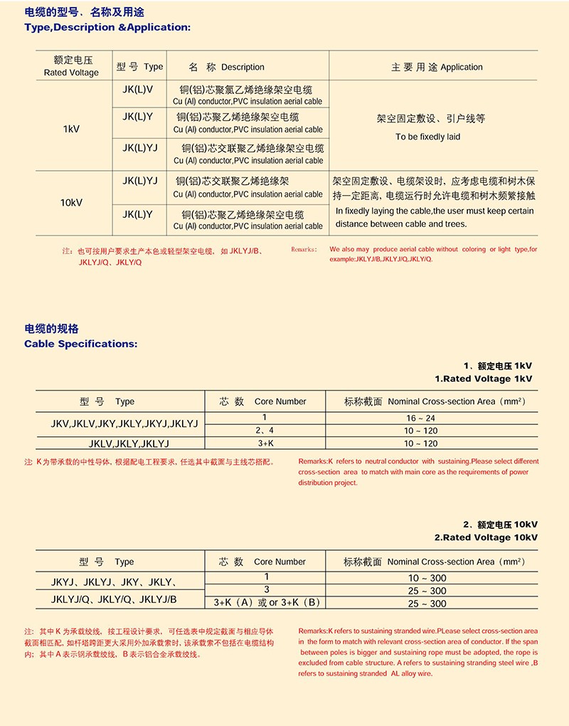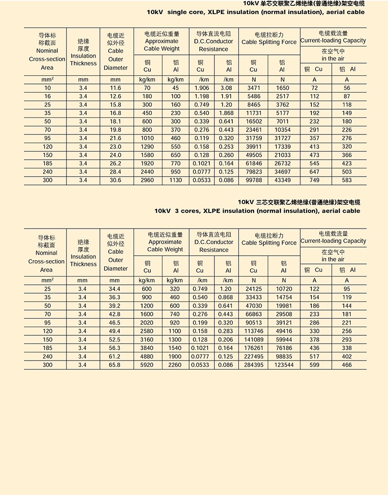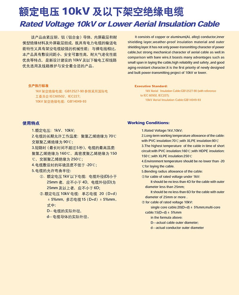 額定電壓10KV一下架空絕緣電纜