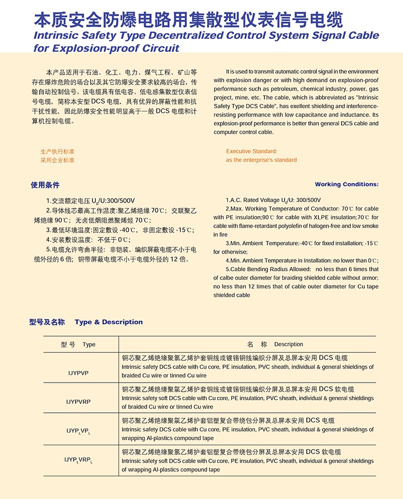 本質(zhì)安全防爆電路用集散型儀表信號(hào)電纜