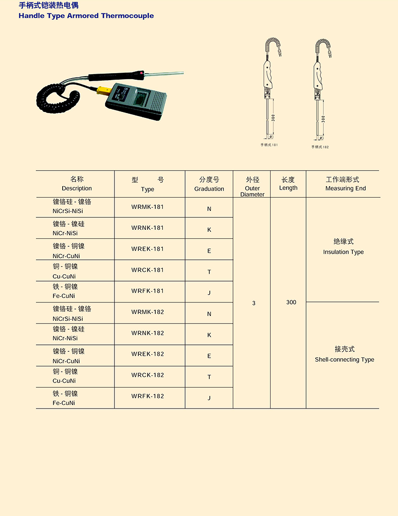 手柄式鎧裝熱電偶