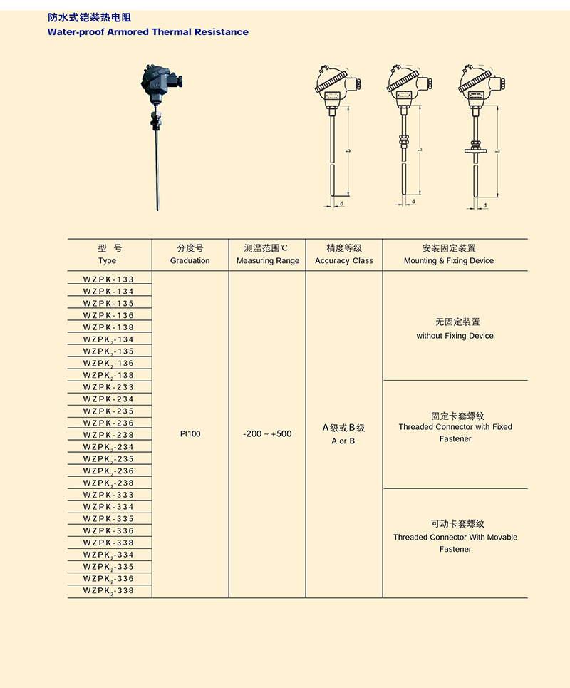 公司主營產品:熱電阻WZP,熱電偶WRN,雙金屬溫度計WSS,磁翻板液位計UHZ-50/C