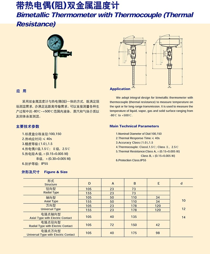帶熱點(diǎn)偶(阻)雙金屬溫度計(jì)