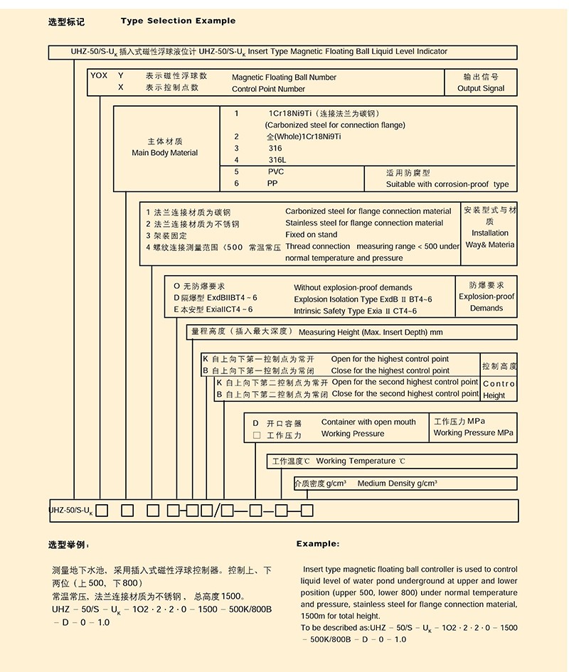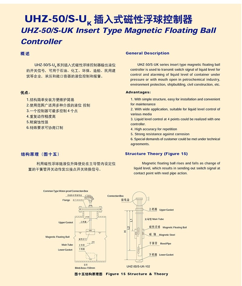 UHZ-50/s-UR/UB系列插入式磁性浮球液位變送器