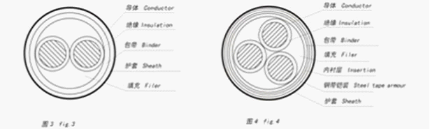0.6/1 kV交聯電纜結構包括單芯結構、二芯結構、三芯結構、四芯結構(含3+1結構)、五芯結構(含4+1,3+2結構)等,分別見圖1-13。