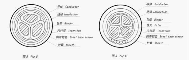 5、五芯結構電纜見表6-7~6-9 Five core cable in table 6-7~6-9
