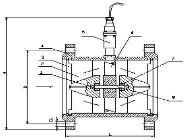 1. 過濾器 2.前直管段 3.葉輪 4.前置放大器 5.殼體 6.后直管段